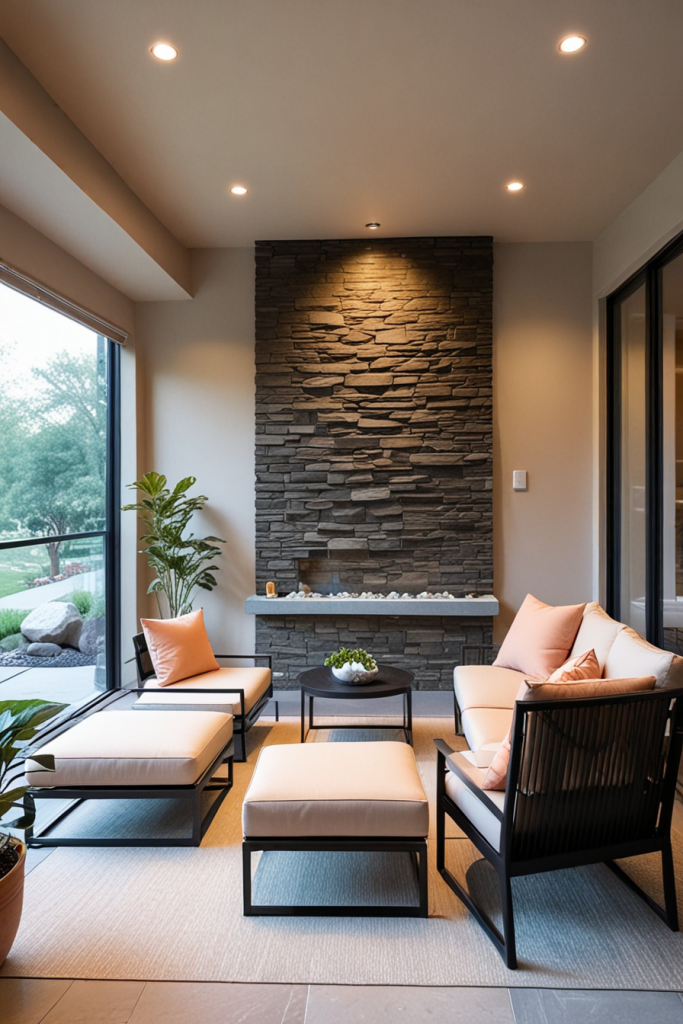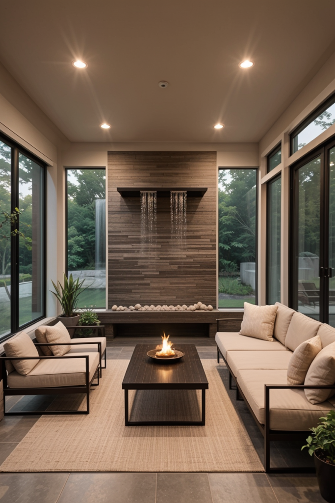 Creating a soothing atmosphere for the senses adds a calming impact, while the water feature sleek indoor waterfalls, wall-mounted fountains or even small reflecting pools add to tranquil retreat. Incorporating stone accompanied with glass or even concrete ensures minimalist designs, giving cohesion and modernity along with transforming 3 season porches to relaxing places.