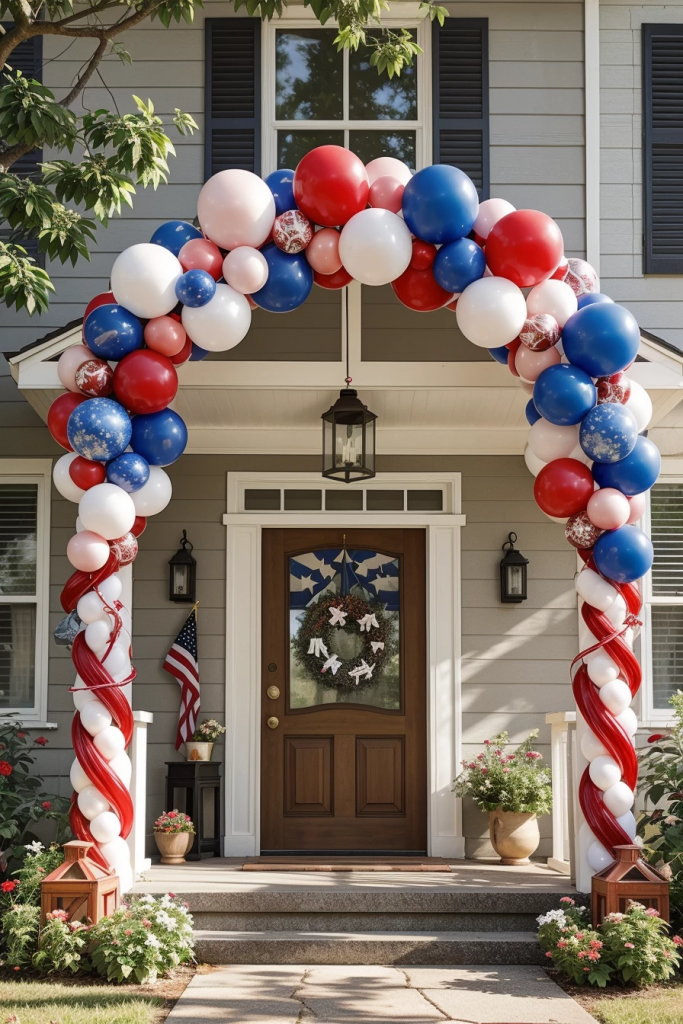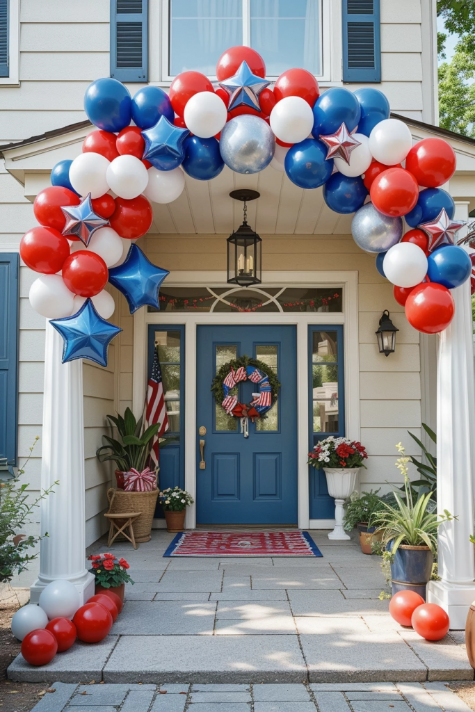 Grab your flag-themed balloon arch and place it at the entrance of your porch which will surely turn heads! Go for a mix of red, white, and blue balloons of different sizes, along with some shiny star printed balloons for extra flair. If you’re throwing a party, balloon arches are perfect, whether for family pictures or simply to make your porch the center of attention.