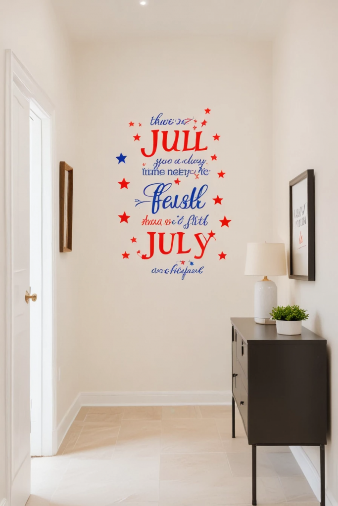 Wall decals work perfectly for small or set aside spaces such as narrow hallways. Opt for removable decals in the shape of Patriot quotes, stars, or even fireworks. Place them on one side of the wall and compliment the other side with minimalist art or a thin wall-mounted light. This approach is simple, safe for renters and makes the space more aesthetic without it being too messy.