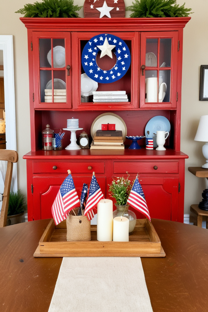 Patriotic Tabletop Vignettes Styled Beneath the Hutch