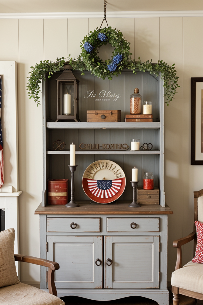 Curating a Hutch with Weathered Wood and Soft Patriotic Hues