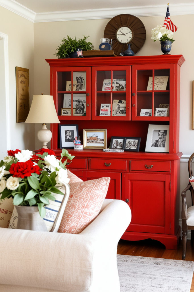 Nicely framing and displaying vintage patriotic postcards on the hutch for July 4th is both artistic and nostalgic. Search for early 1900s cards depicting themes of Independence Day and have them placed in gentle brass or wooden frames. Either lean them against the back wall of the hutch or hang them above for optimal visibility. The unique intricacies of these postcards being framed will add sophisticated vintage charm to your space.