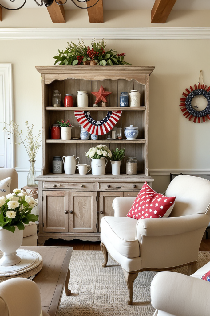 4th of July Hutch Decor in the Vintage-Inspired Living Room