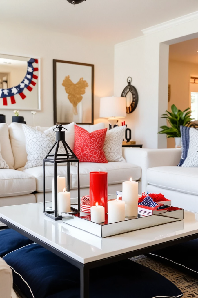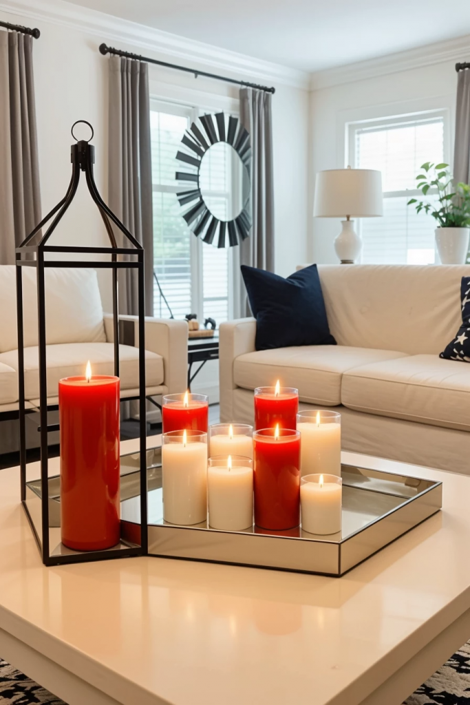 Decorative Lanterns and Candle Arrangements in Patriotic Colors
