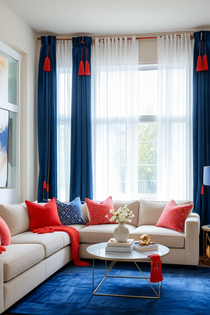 Sophisticated Red, White, and Blue Color Schemes for the Living Room