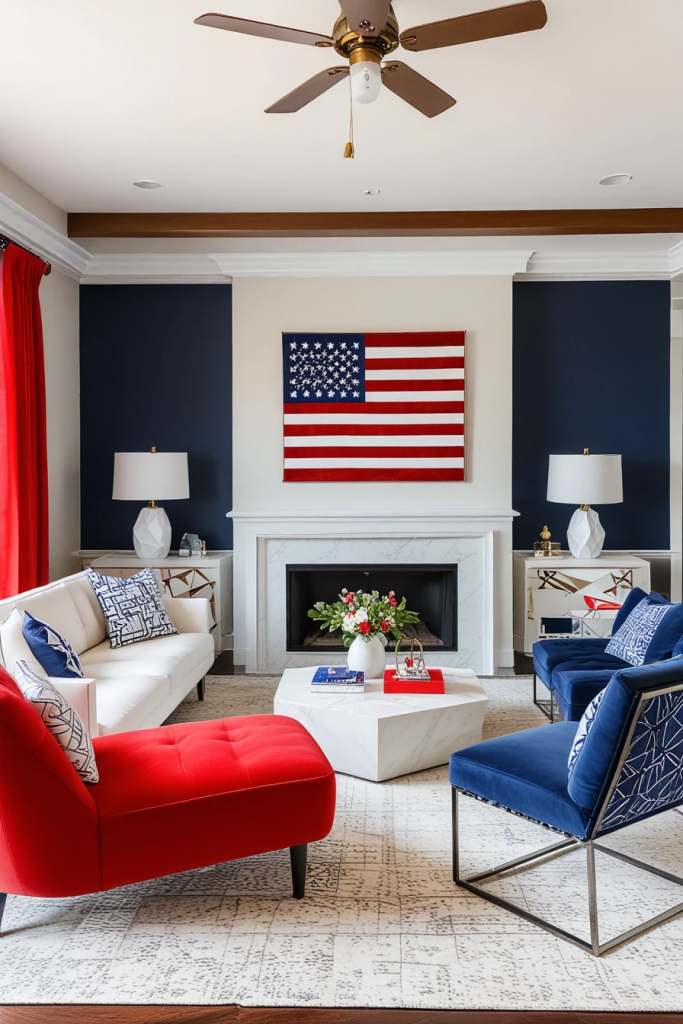 High-Contrast Independence Day Decor for Modern Living Rooms