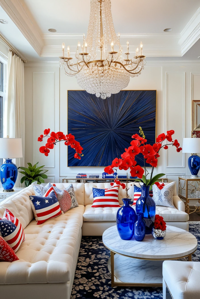 Luxury-Inspired 4th of July Living Room with Designer Accents