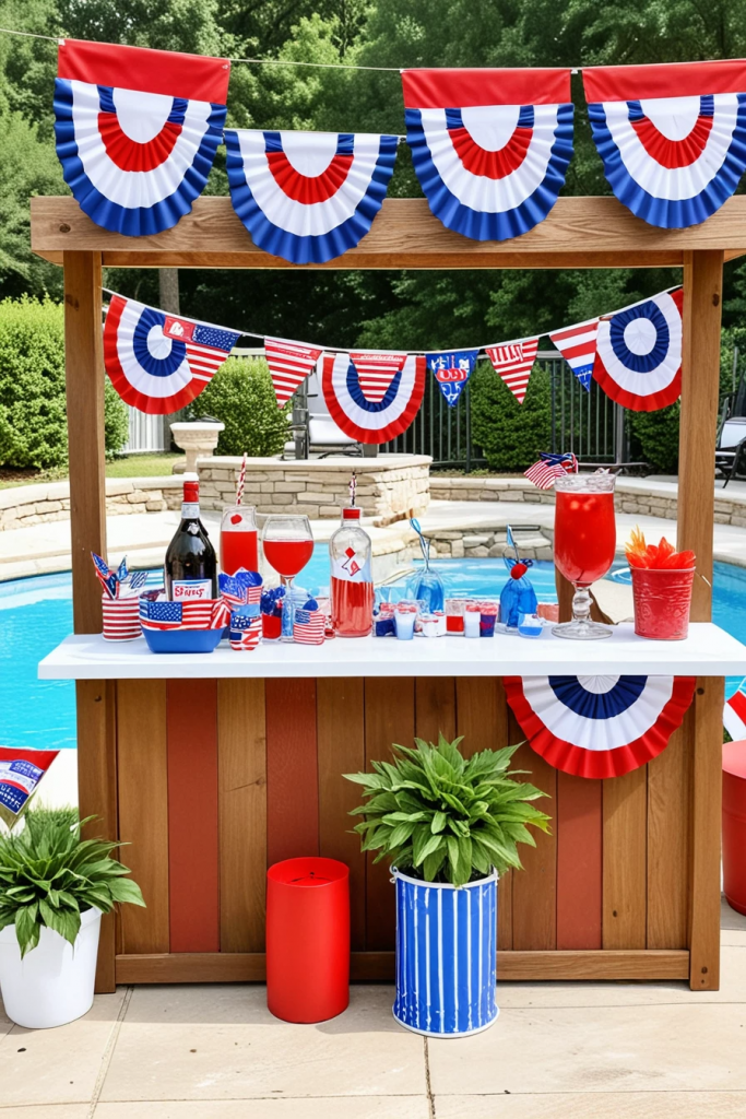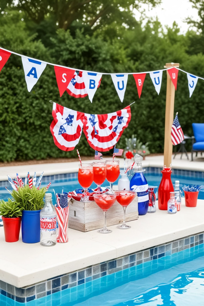 Setting Up a 4th of July Pool Bar with Themed Decor