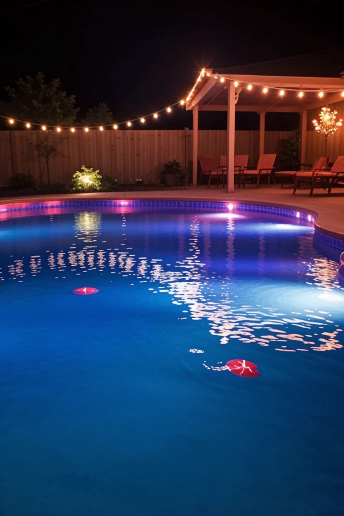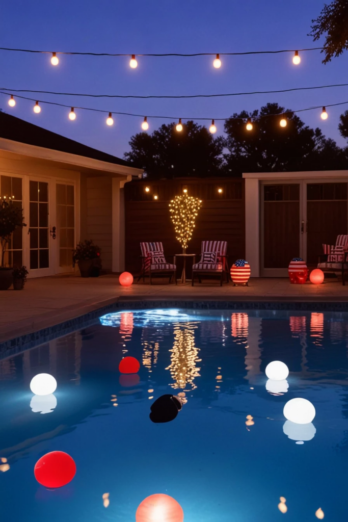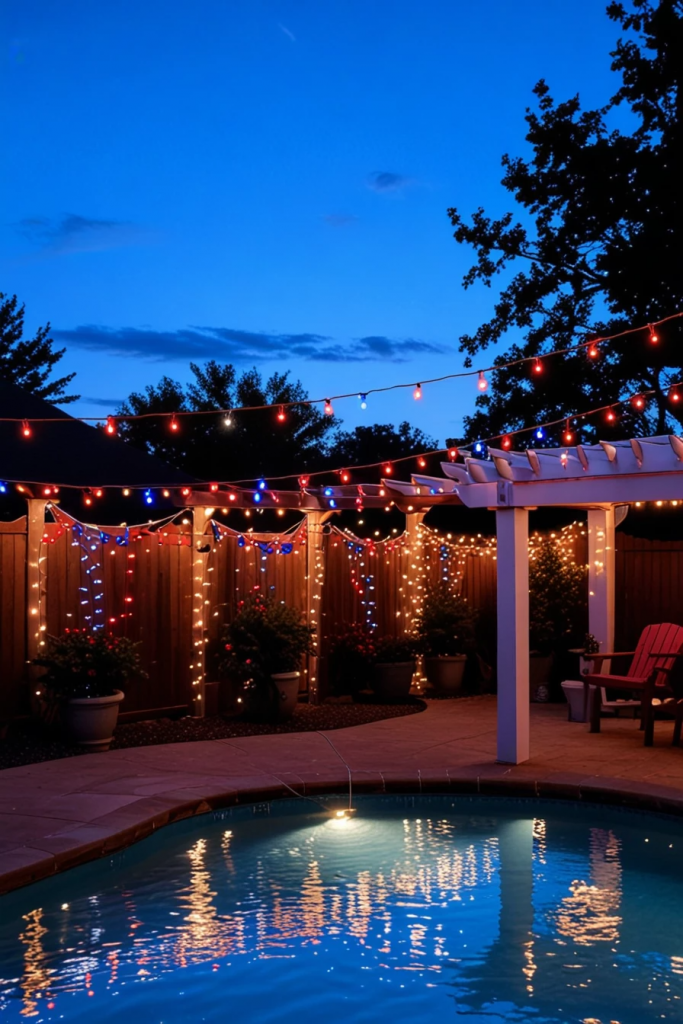 Sparkling Red, White, and Blue String Lights for the Poolside