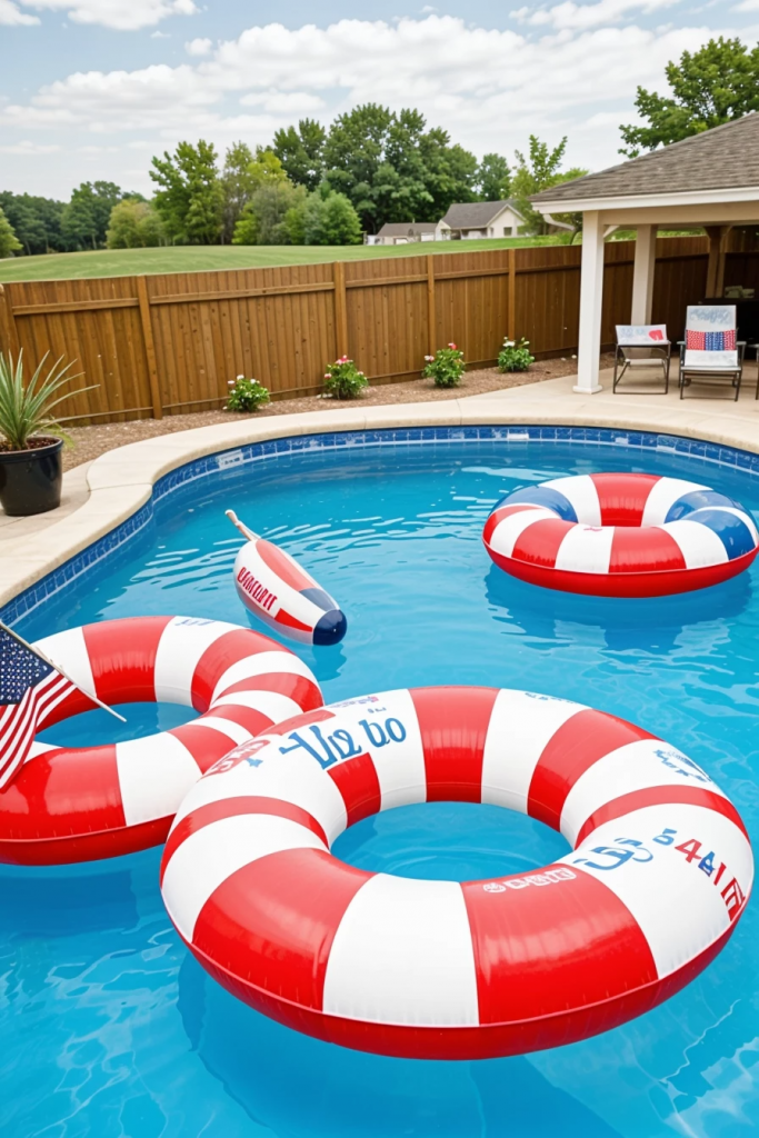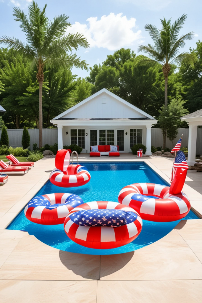 Pool floats have become more than just items for entertainment—they are now pieces of art. Go for the larger-than-life star or eagle or even an American flag float. Pair them with red and blue stripes or unique textures such as velvet touch or metallic shine. A hint of whimsy and a striking splash of color is what these pieces bring to the pool.