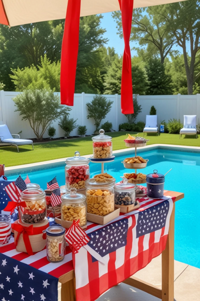 Decorating Poolside Food Stations with Flag-Inspired Accents