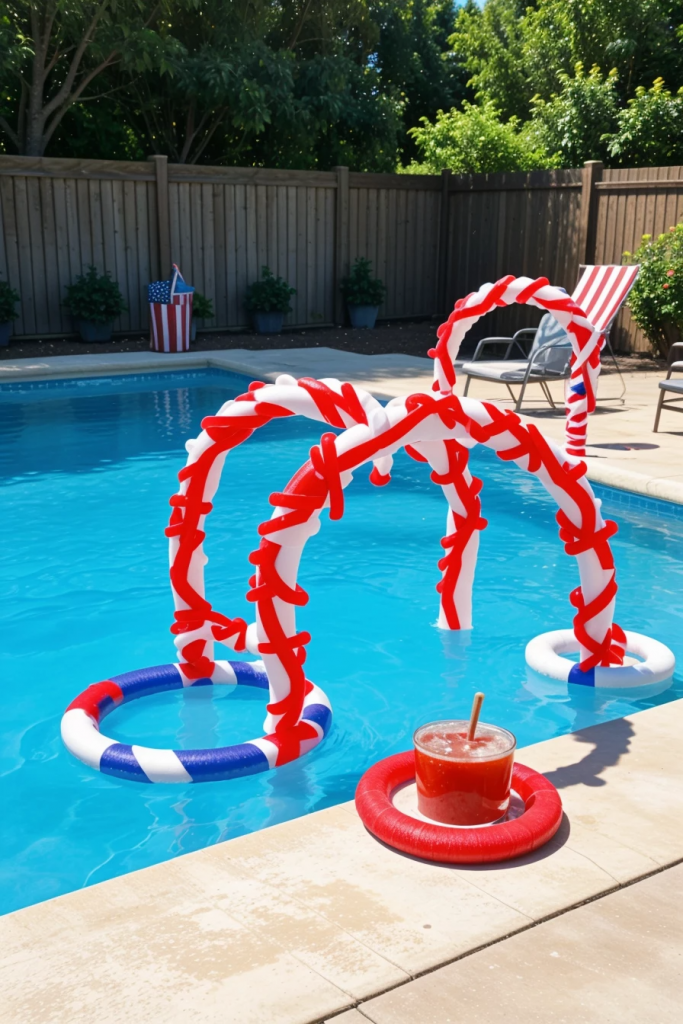 With a splash of creativity, pool noodles can be transformed into colorful decorations. You can make arches, stars, or even mini rafts for drinks using red, white and blue noodles. For a fun and safe style detail, use them as edging along pool stairs or fences and fasten them with ribbon.