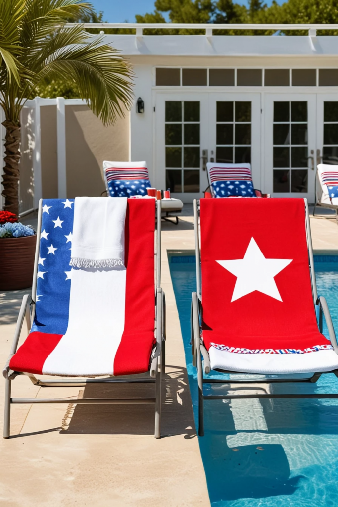 Coordinating Towels and Lounge Chairs with Patriotic Prints