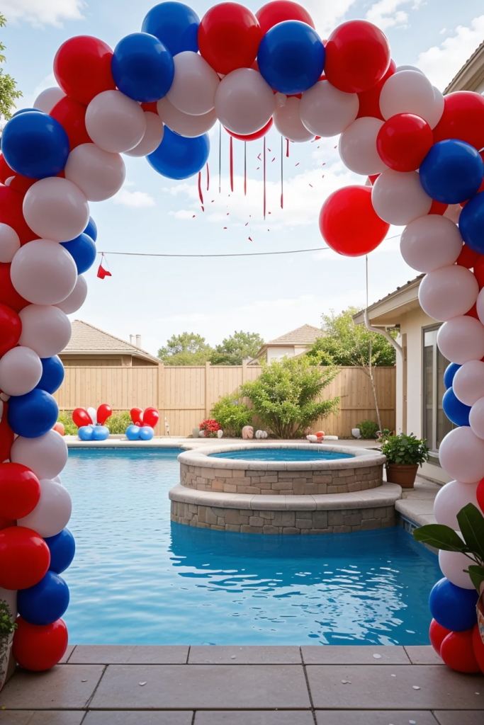 Creating a Red, White, and Blue Balloon Arch for the Pool