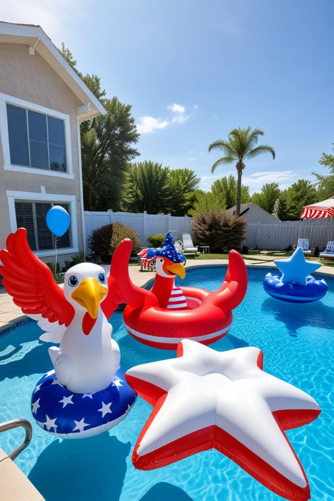 Pool floats have become more than just items for entertainment—they are now pieces of art. Go for the larger-than-life star or eagle or even an American flag float. Pair them with red and blue stripes or unique textures such as velvet touch or metallic shine. A hint of whimsy and a striking splash of color is what these pieces bring to the pool.