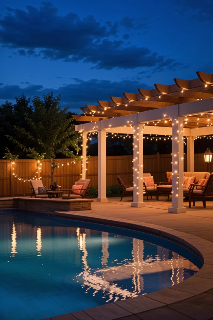Sparkling Red, White, and Blue String Lights for the Poolside