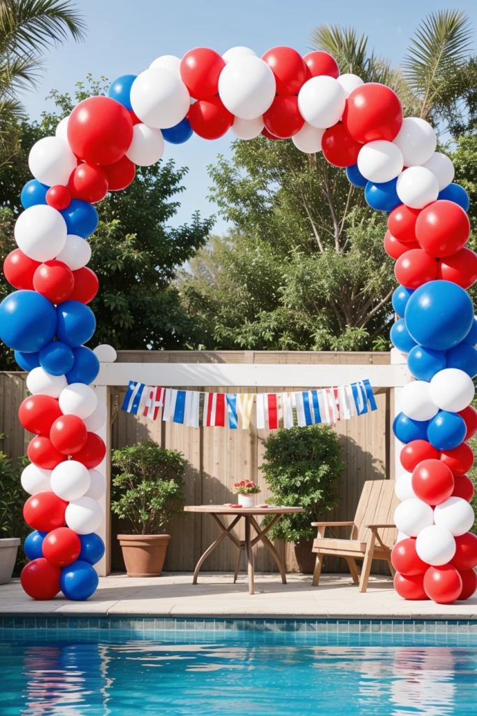 Creating a Red, White, and Blue Balloon Arch for the Pool