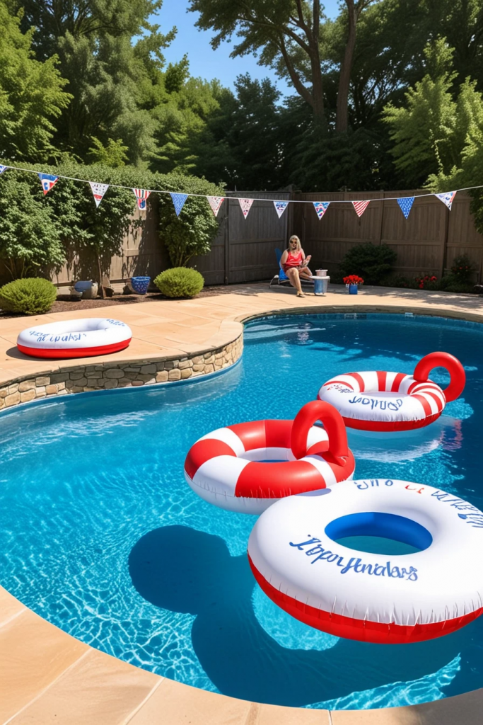 Give your pool a fun and personal twist with patriotic pool floats that can be tailored to your liking. Go for phrases like “Freedom to Float” or “Stars & Swimsuits” in striking font over red, white, or blue pool inflatables. The colorful words on the floats will definitely liven up the atmosphere and will capture some amazing memories for your guests on social media.