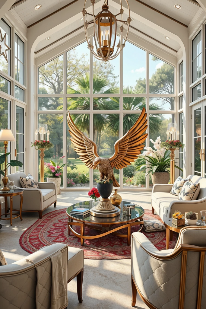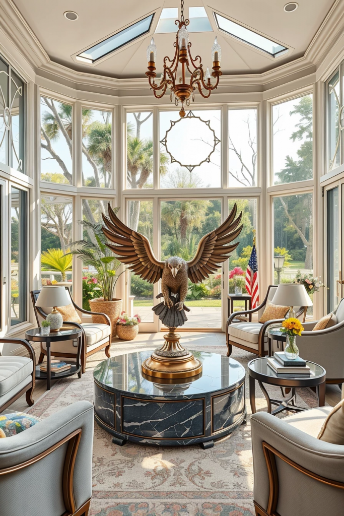 Sculptures offer a level of sophistication that will elegantly elevate the appeal of your sun room for Fourth of July celebrations. Select appropriate sculptures such as smooth marble stars, crystal liberty torches, or brushed metal eagles, which would best sit on pedastals or sleek side tables. This approach creates an exclusive whimsical festive aesthetic that doesn’t lean into the traditional decor pitfail traps.
