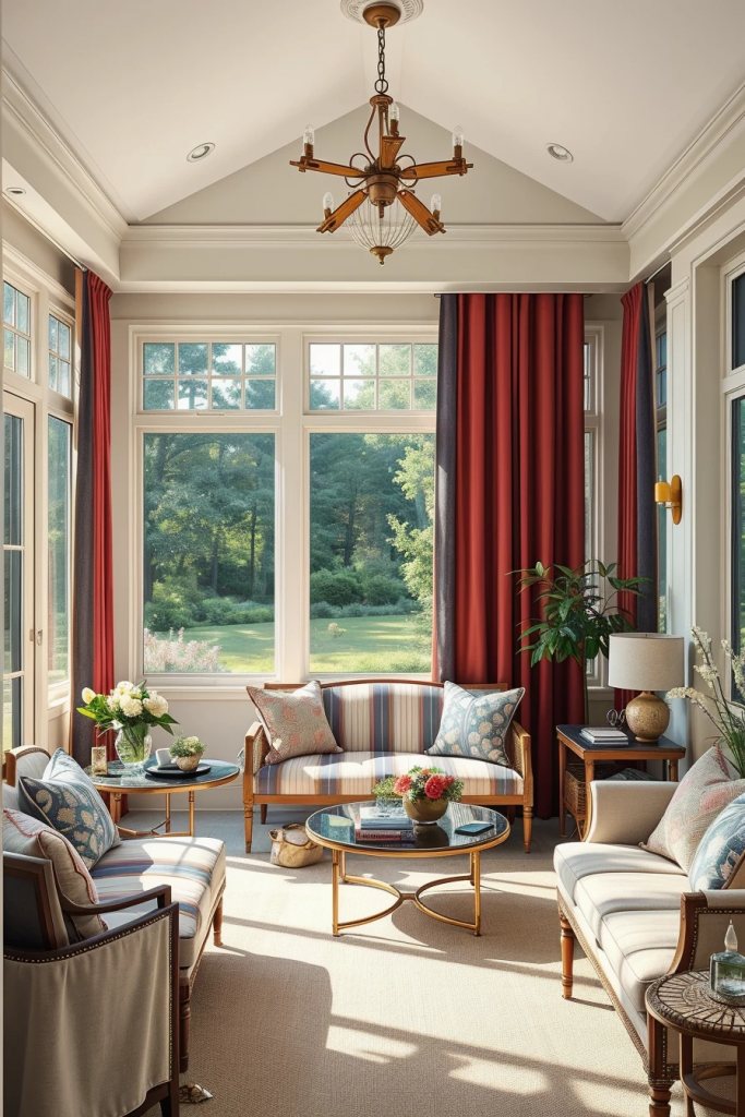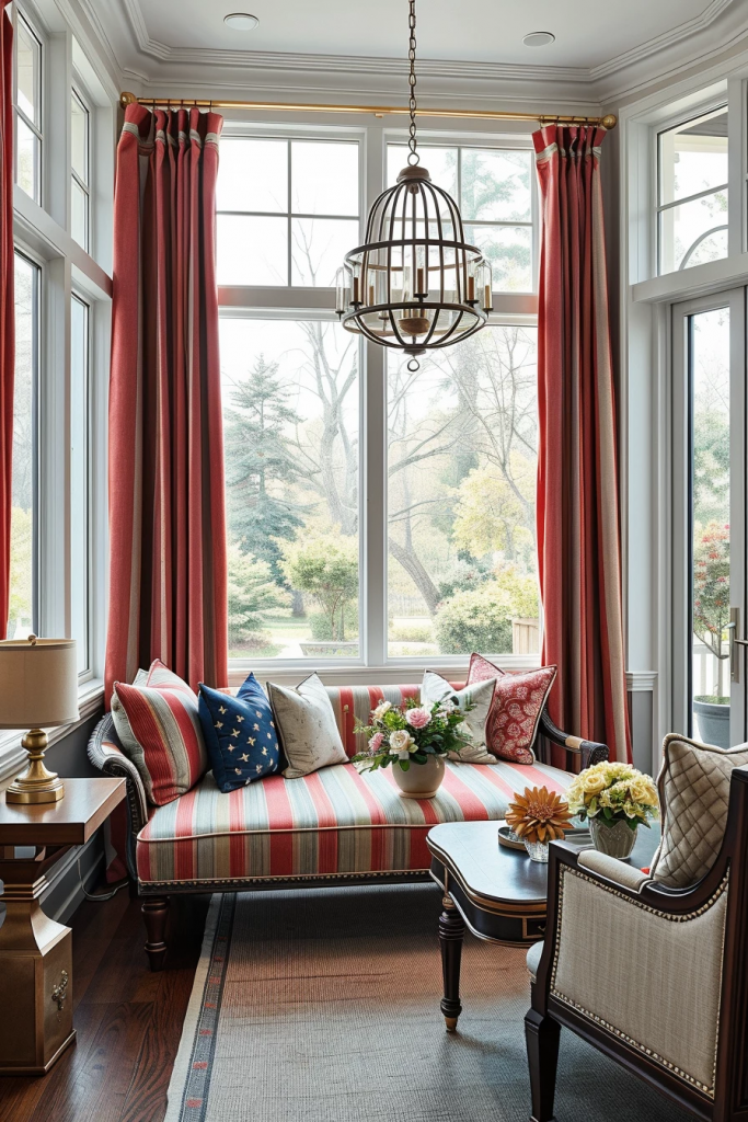 Sophisticated Striped Patterns in 4th of July Sunroom Design