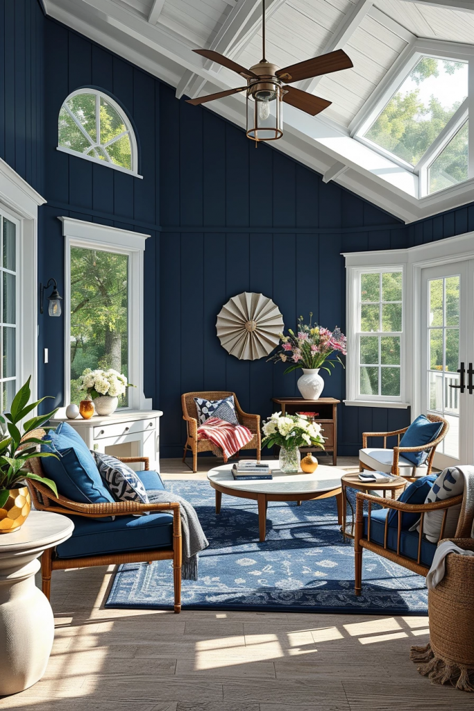 Creating a Chic Navy and White 4th of July Sunroom Palette