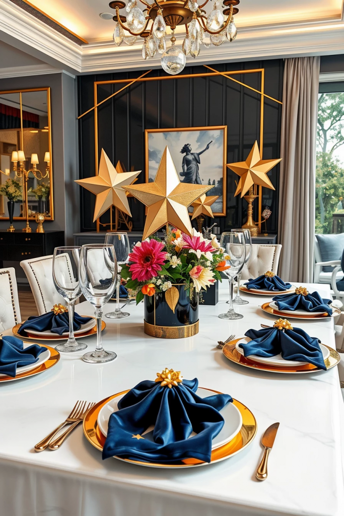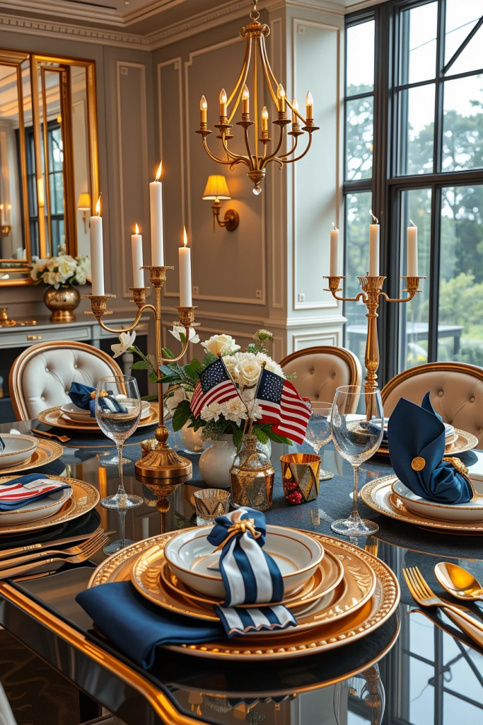 Elegant Fourth of July Tablescapes with Metallic Accents