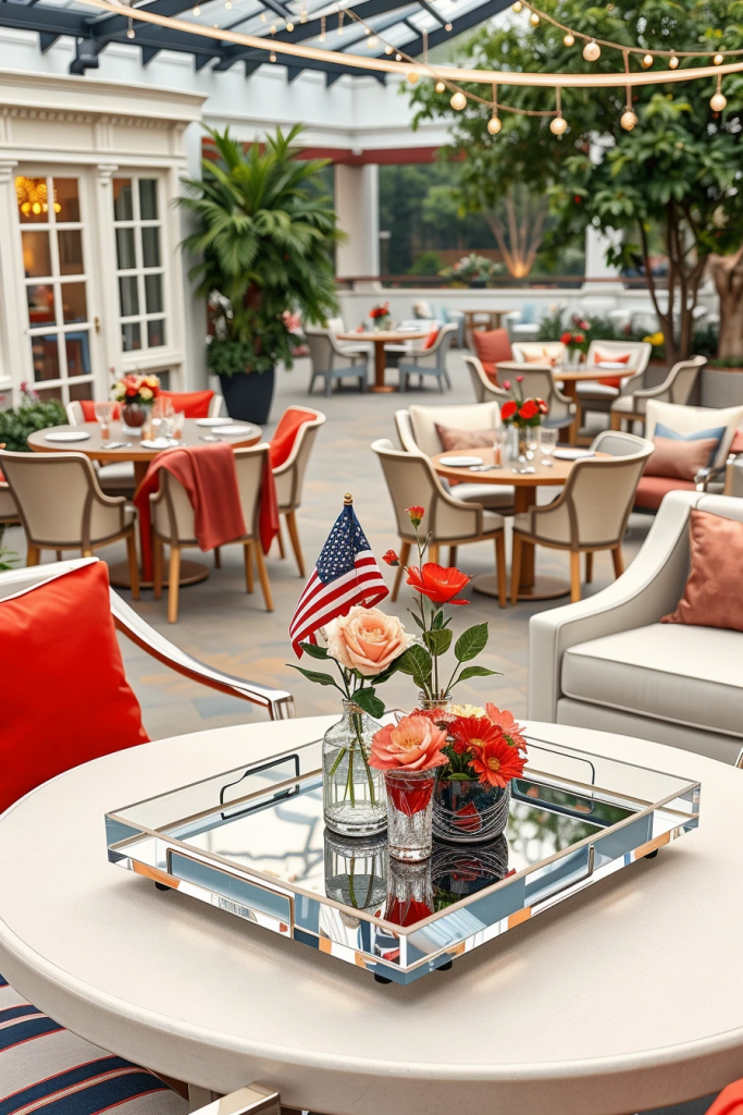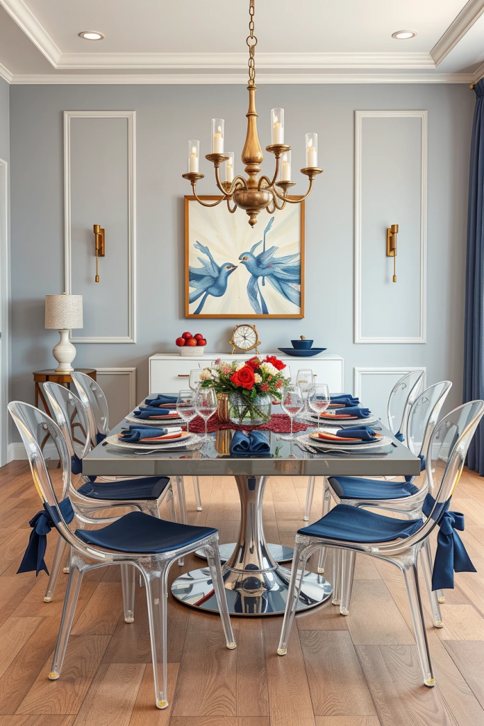 The use of clear acrylic elements adds a modern touch to your 4th of July table decor. Consider using ghost chairs or transparent trays in addition to acrylic chargers. This enables a floating style which is minimalistic. These modern pieces can be paired with more rigid patriotic colors like bold navy napkins or small red place settings. This achieves theme consistency while maintaining a sleek and modern approach.