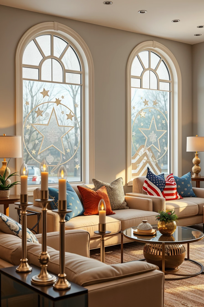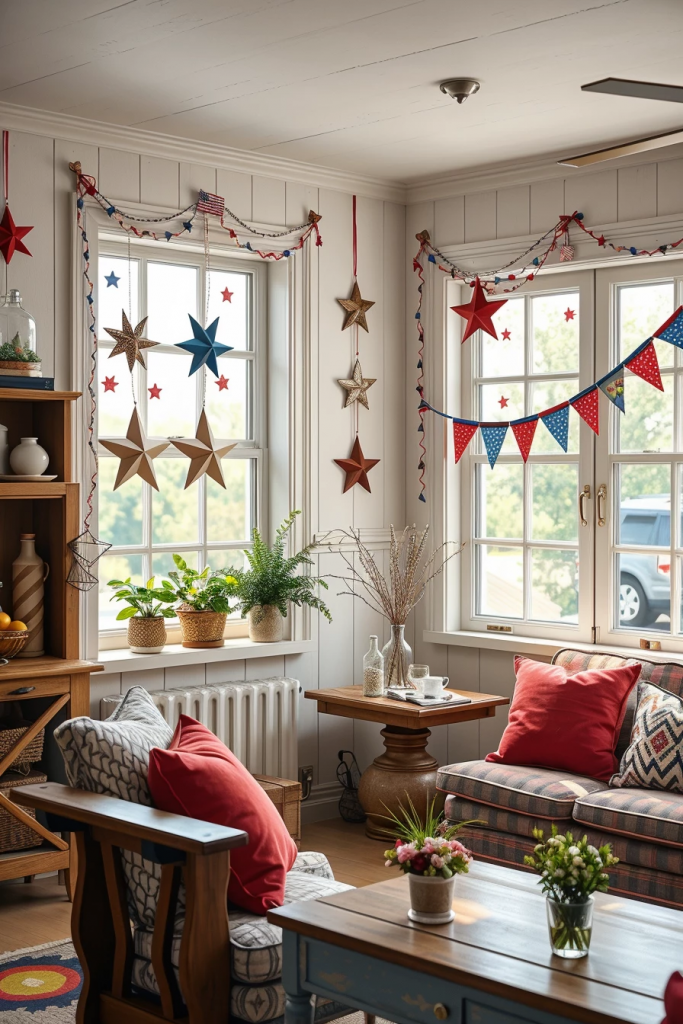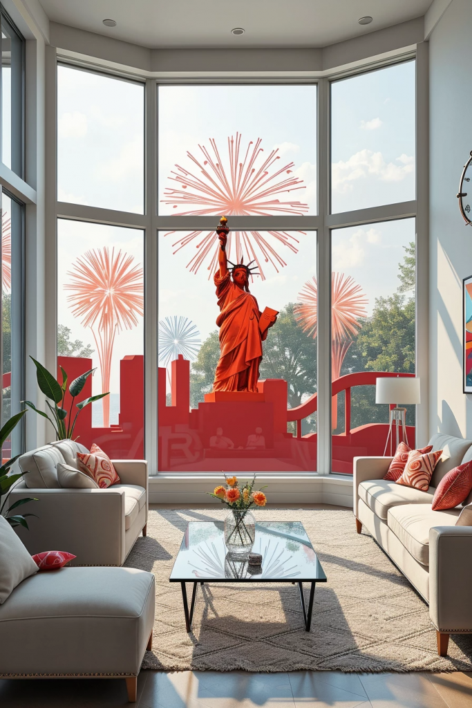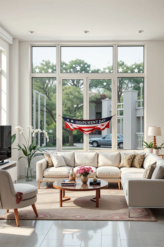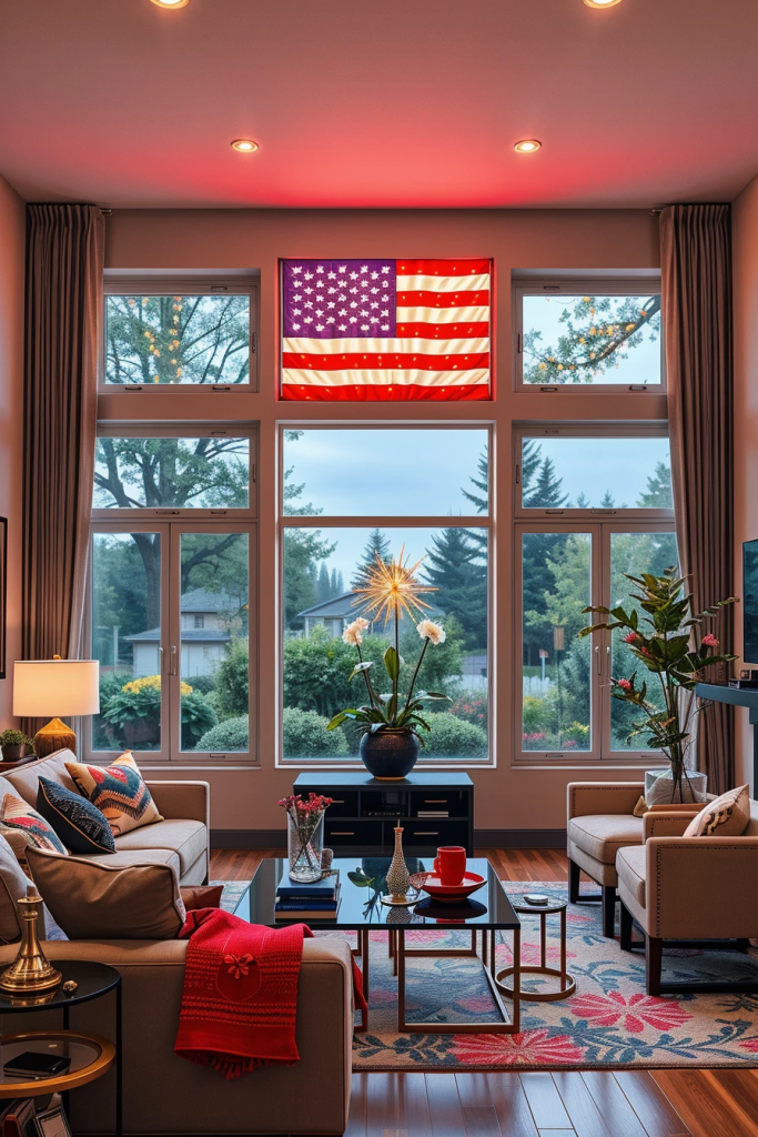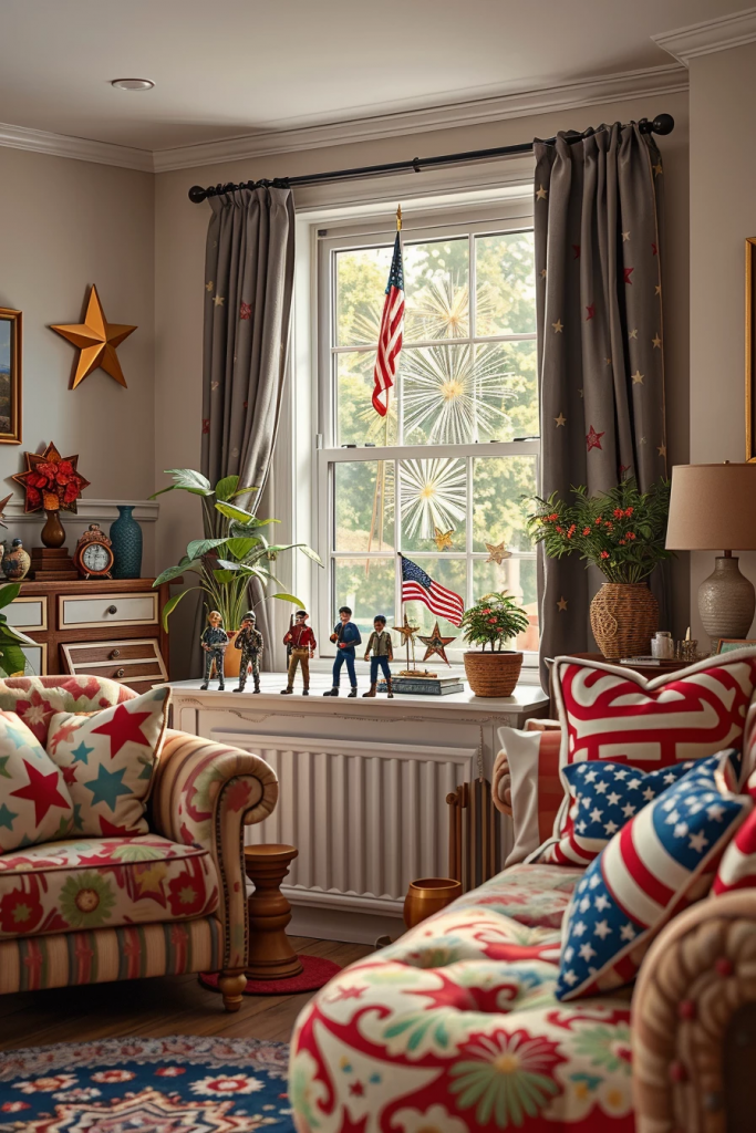Engage children by helping them create festive 4th of July window decorations. Cheerful window displays can easily be made with colorful cutouts, stickers, and window markers which will add splendor and joy to any patriotic setup. The window art can be framed with a playful family room arrangement like beanbags, crafting tables, and bright rugs and thus transform the room into a family friendly holiday wonderland.
