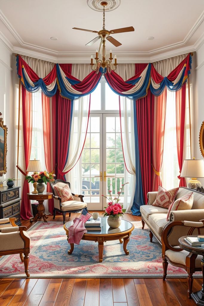 Layering Sheer Red, White, and Blue Fabrics on Windows