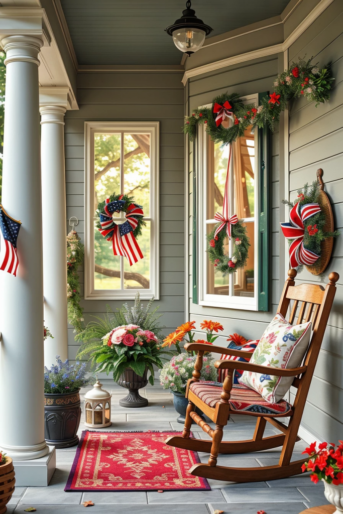 This style of decorating windows both indoors and outdoors evokes the essence of patriotism. String lights and garlands can be placed on the interior part of the window while wreaths and wreaths or banners can be put up outside. An inviting rocking chair or a bench can be placed a little bit away from the window and adorned with cushions of blue, red, and white to bring the indoor and outdoor settings together seamlessly.