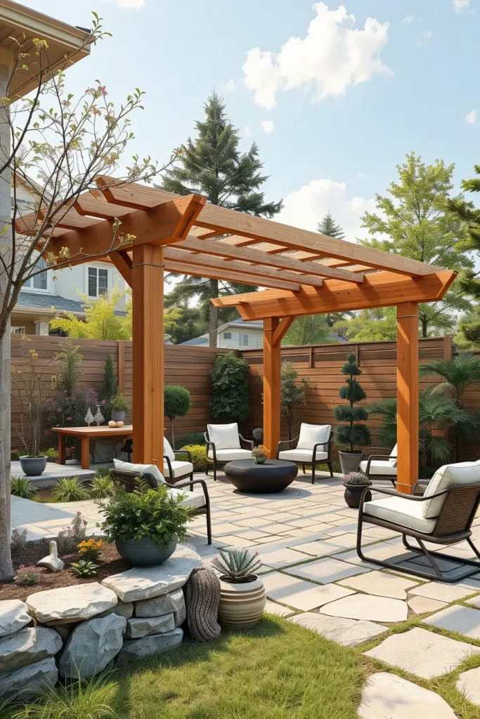 Pergolas and shade structures define outdoor living in 2026 by providing comfort without enclosing the space. I use them to create focal points and establish usable zones within larger backyards. These structures also help regulate temperature and improve the overall comfort of outdoor seating and dining areas.