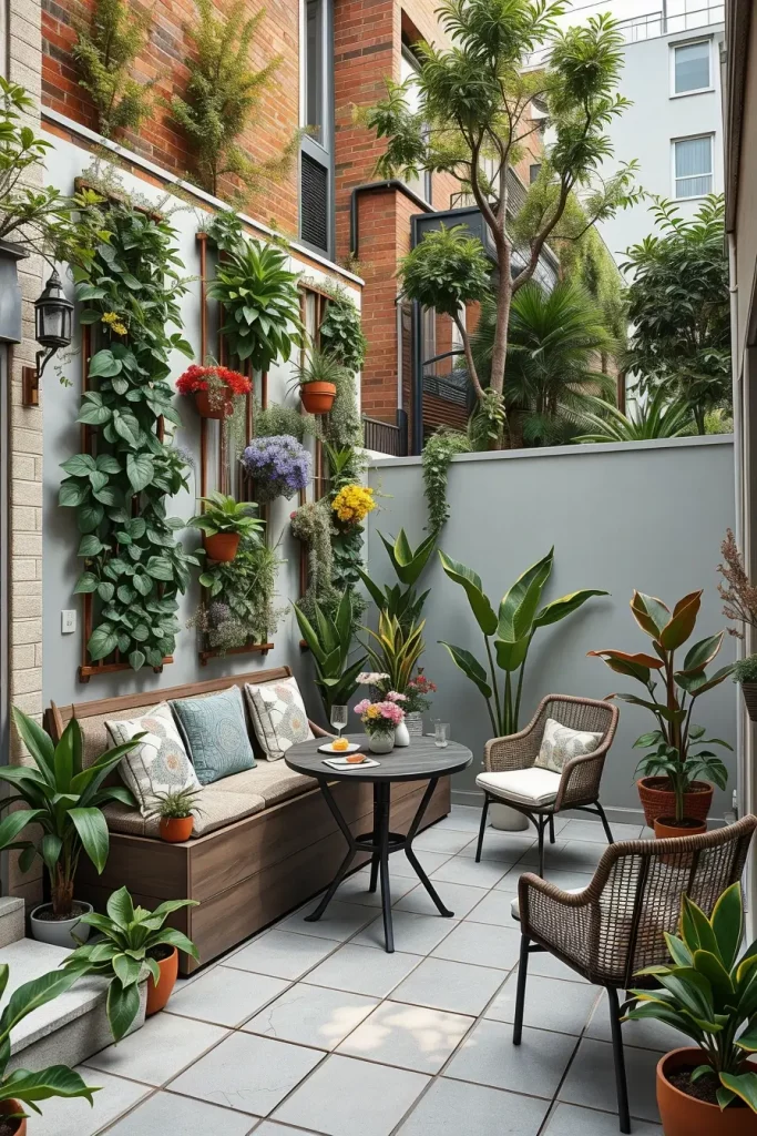 I incorporate living walls, vertical planters, trellises, and modular wall systems. These features support climbing plants, herbs, and decorative greenery. Materials are selected for durability and proper drainage, ensuring long-term performance in outdoor conditions.