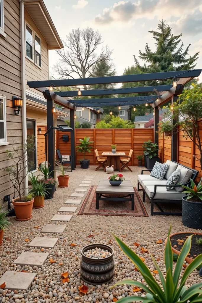 I rely on gravel paths, modular furniture, container gardens, and solar powered lighting to achieve cost effective transformations. Refinished wood furniture and simple pergola structures provide character while keeping expenses manageable. Plant selections prioritize fast growing, resilient species.