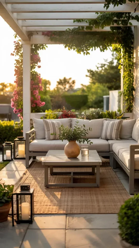 I always start any patio design by defining a clear aesthetic direction, because without it, even beautiful elements can feel disconnected. In summer patio decor inspiration 2026, the focus is on relaxed sophistication, where indoor comfort seamlessly extends outdoors. I recommend thinking of your patio as an extension of your living room, with intentional zones, cohesive colors, and a balance between functionality and style.