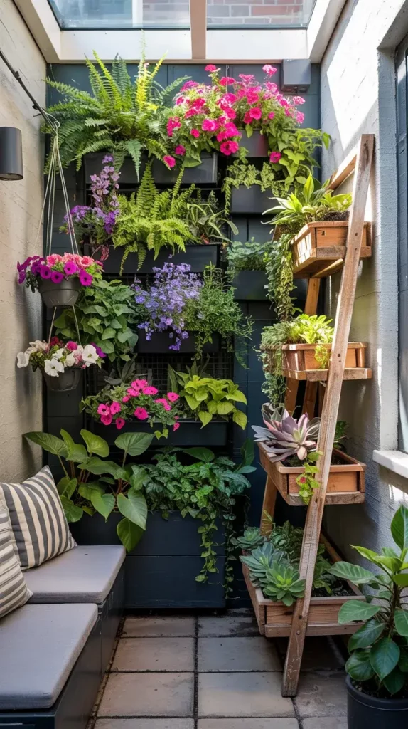 I often install wall-mounted planters, trellis systems, or modular green walls. Hanging baskets and ladder-style plant stands are also excellent additions. These elements create dimension and draw the eye upward, making the patio feel larger and more dynamic.