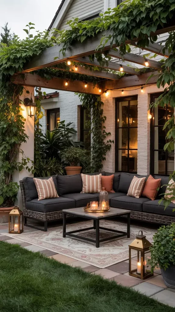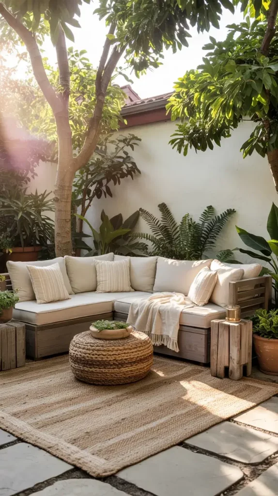 From my experience, the foundation of this aesthetic includes modular seating, layered lighting, and subtle decor accents. I often use low-profile sofas, neutral cushions, and warm wood or metal frames to establish a modern base. Adding elements like outdoor rugs and lanterns creates depth and ensures the space feels curated rather than temporary.