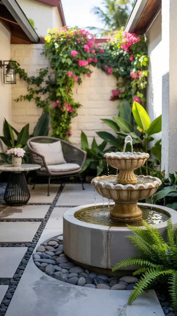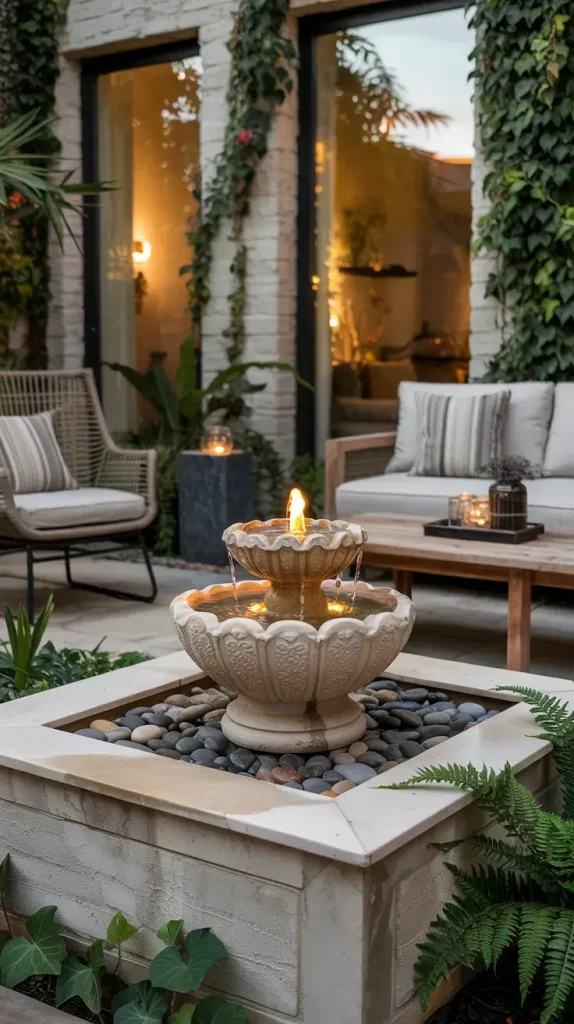 Incorporating water features is one of my favorite elements in summer patio decor inspiration 2026 because it instantly adds a sense of calm. The sound of flowing water creates a relaxing atmosphere that enhances the overall outdoor experience.