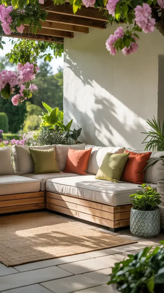 When selecting a palette for summer patio decor inspiration 2026, I always look to nature first. Soft terracotta, sandy beige, olive green, and sky blue tones create a calming yet summery atmosphere. These colors not only reflect the outdoors but also help the patio feel timeless rather than overly trend-driven.