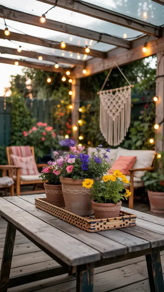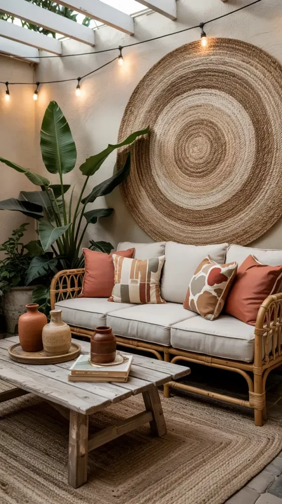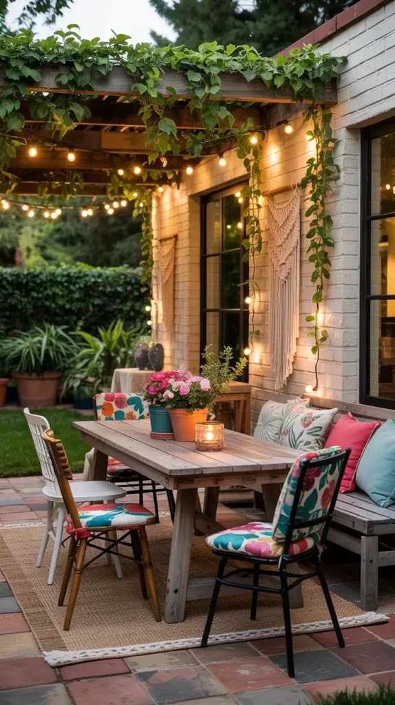 Boho style remains a strong direction within summer patio decor inspiration 2026, and I find it particularly effective for creating a relaxed, artistic atmosphere. This style allows for creativity while maintaining a cohesive and comfortable outdoor space.
