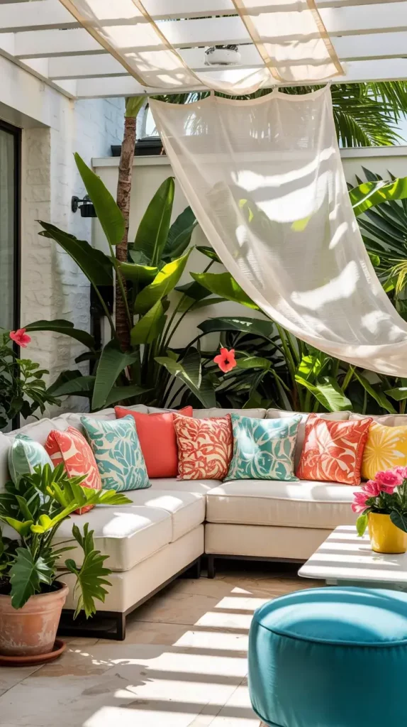 I typically swap out cushions, throws, and table settings to match seasonal colors. Incorporating fresh flowers, tropical plants, and citrus-inspired decor adds brightness and freshness. Lightweight curtains or shade sails also enhance comfort during hot summer days.