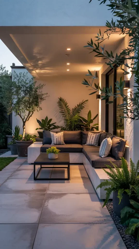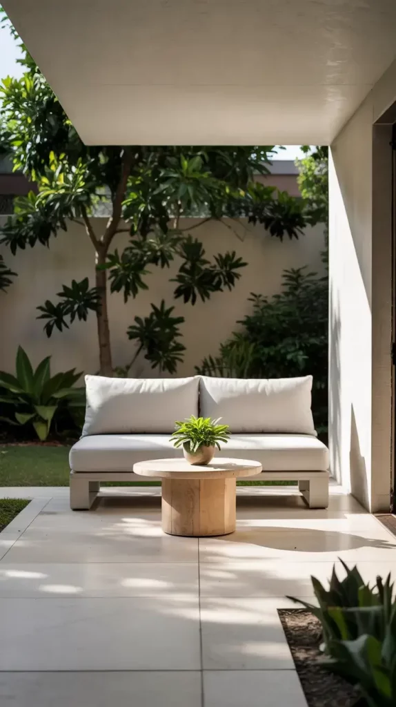 What’s often missing in minimalist patios is warmth. I recommend adding soft lighting or a few natural elements, like plants, to make the space feel inviting rather than sterile.