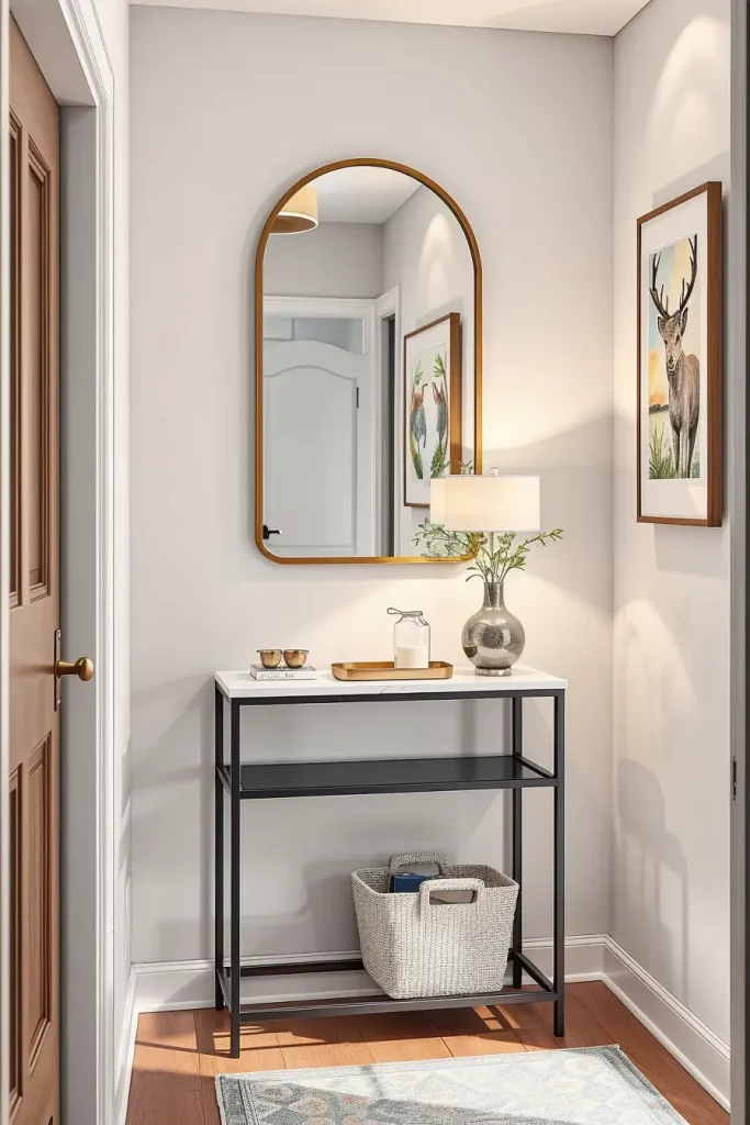 As a final touch, I might choose to add a decorative coat hook rack over the table or attach a slim mail organizer to clear the tabletop.