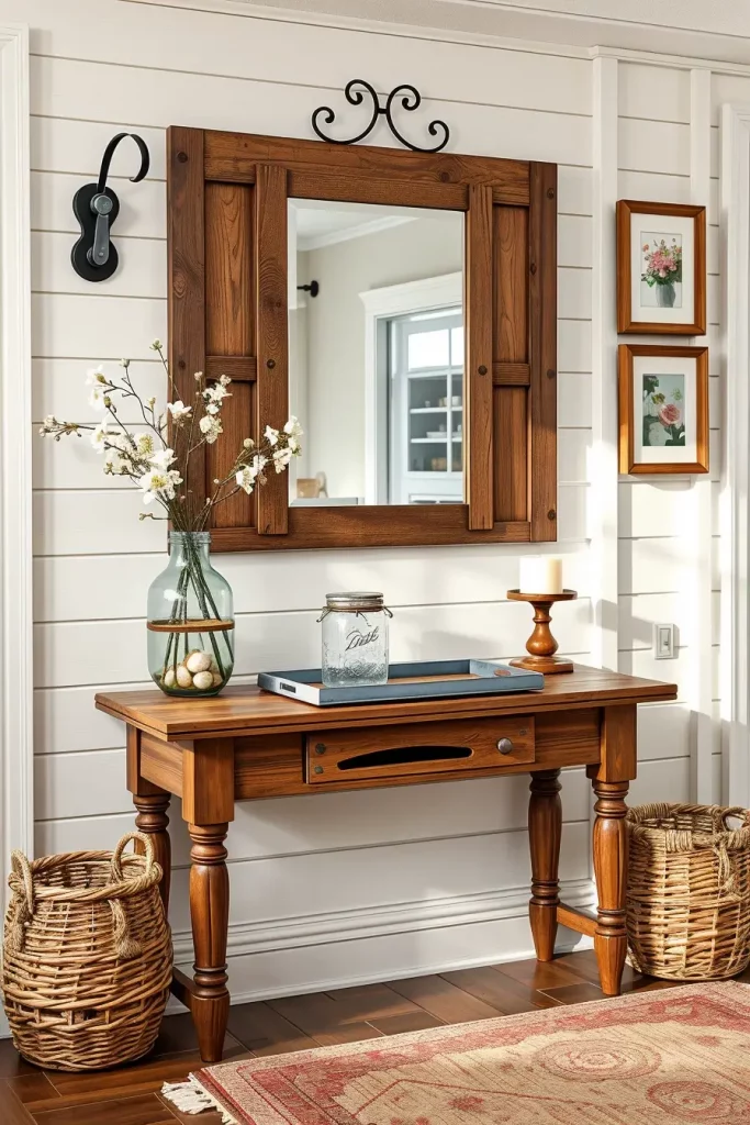 Rustic entryway tables are rustic, cozy, and tell a story. For a homey feel, I seek out shiplap walls, distressed wood finishes, and farmhouse-style elements. The tables aspec I love most have thick legs, weathered texture, and visible grain.