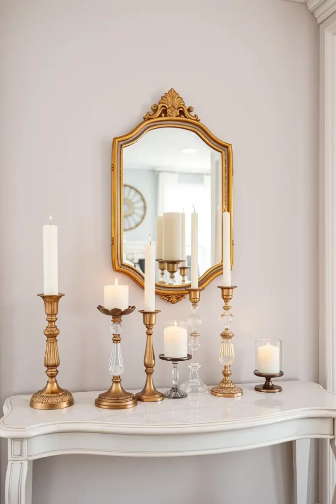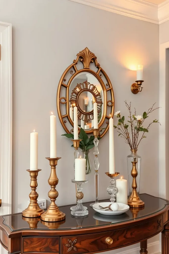 Candle holders and candles are charming accessories to consider when I need to customize the atmosphere in a space or room. They illuminate spaces, provide soft lighting, enhance fragrances, and uplift any foyer decor scheme, no matter the style of the home, from traditional to minimalistic.
