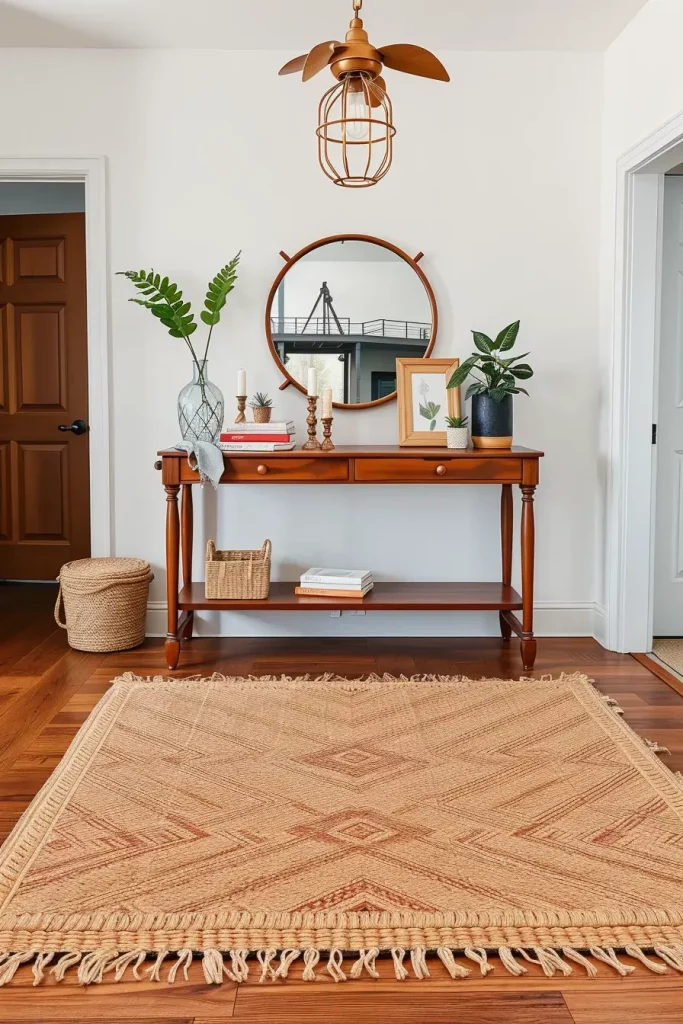 Enhancing Textural Aesthetics By Layering Rugs Under Entryway Tables