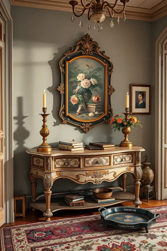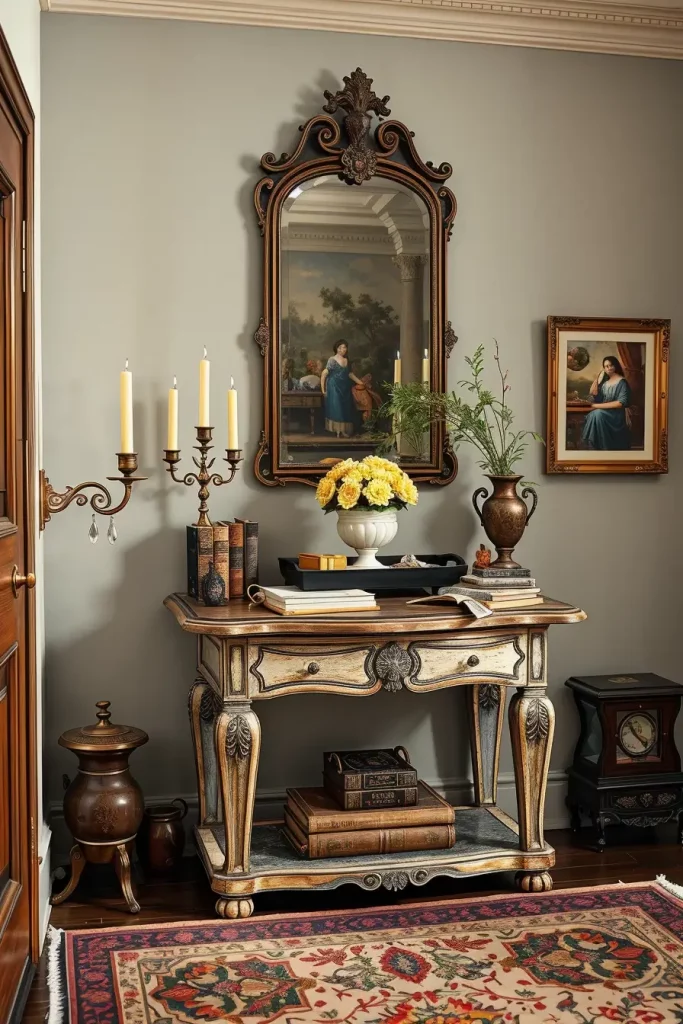 Using vintage and antique decor in an entryway is wonderful for many reasons. It tells a story and adds a sense of care that modern decor lacks. I find this style works best for homes with traditional, cottage, or eclectic themes. Most importantly, it sets the mood for places that appreciate history.