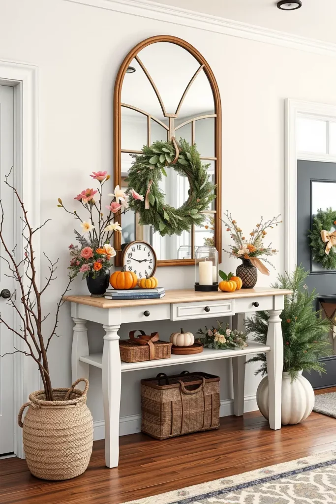 Eye-Catching Holiday Themed Entryway Table Decorations