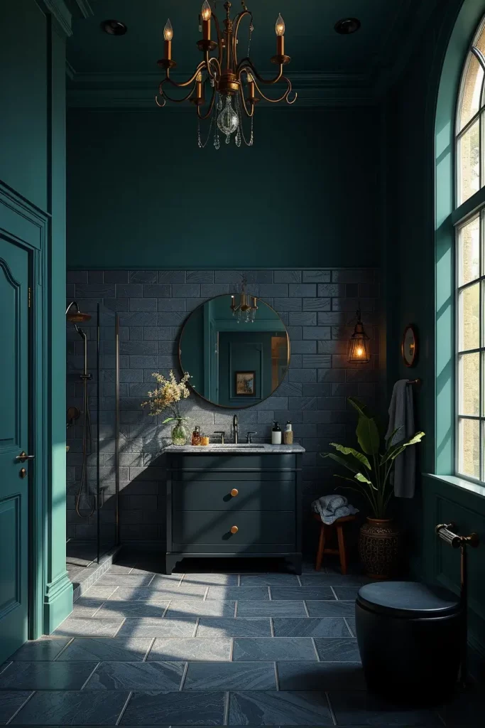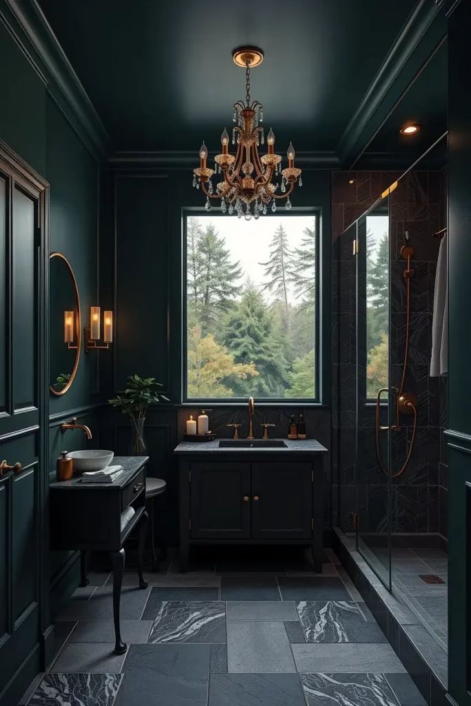 Statement Lighting Strategy For Bathrooms With Forest Green Colors