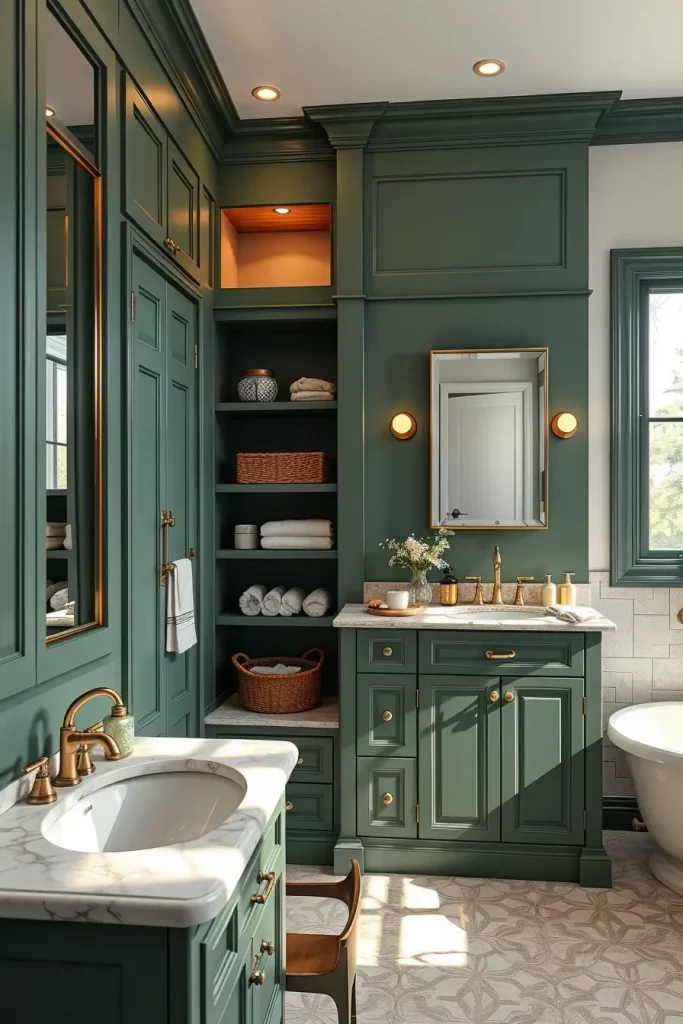 Forest Green Bathroom Cabinetry With Timeless Appeal