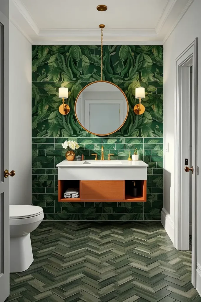 Bathrooms with Leafy Patterns of Tropical Forest Green